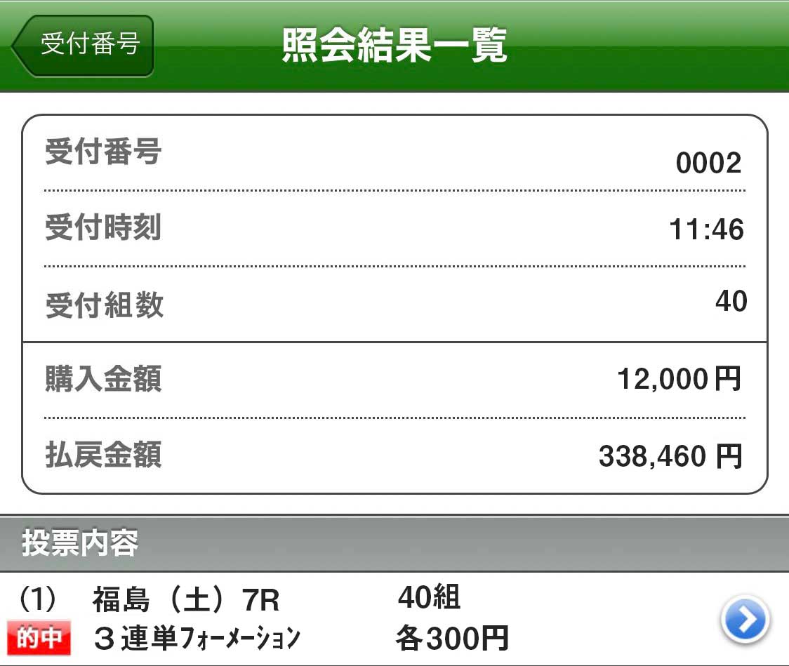 荒れ模様のレースを三連複でうまく拾って258,720円を獲得!