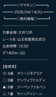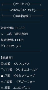 自分はこういうのを見ると、次の障害戦や条件戦で「また無料予想を見たい」と思います。